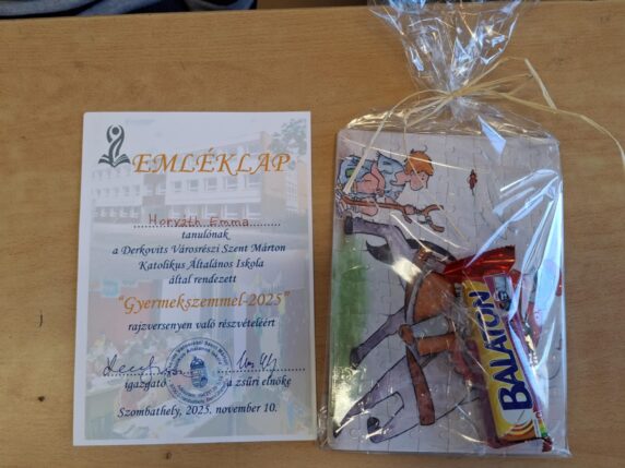 November 10-én Horváth Emma 2.b osztályos tanuló részt vett a Derkovits Városrészi Szent Márton Katolikus Általános Iskola “Gyermekszemmel 2025” című rajzversenyén, ahol Szent Márton legendájáról szóló munkájáért jutalomban részesült. Gratulálunk!